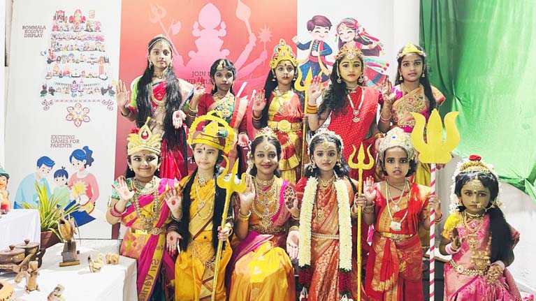 The programme began with a warm welcome that highlighted the deeper significance of Dussehra — a festival that reminds us of the eternal victory of righteousness over wickedness and courage over fear. The day’s proceedings commenced with an enchanting display of Bommala Koluvu, a traditional arrangement of dolls symbolizing devotion, creativity, and storytelling. The dolls were artistically arranged to depict mythological episodes, divine forms, and scenes from everyday village life, serving as a vivid reminder of India’s rich cultural and spiritual heritage. The display also paid tribute to Goddess Shakti, representing feminine power and divinity.