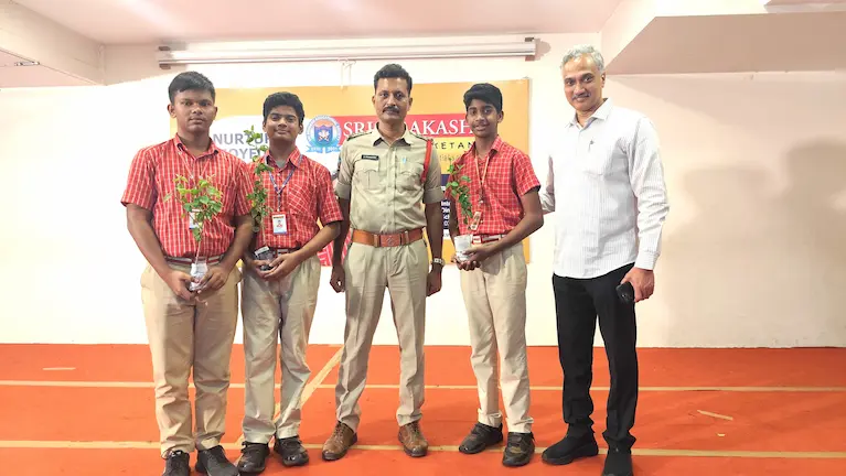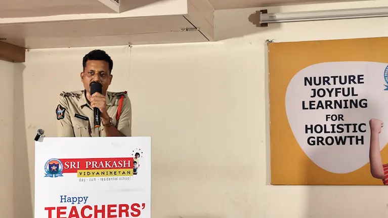 Sri Tirumalarao, CI, Bheemili, addressed the Prakashites and distributed Hibiscus plants, gracing the occasion with his presence, as part of the initiative ‘Let’s nurture nature for our safe future’