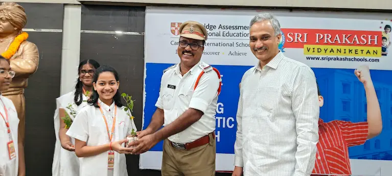 Prakashites distributed Hibiscus saplings as part of their Go Green initiative. On this occasion, Sri A. Dasaradhi, Circle Inspector of Traffic, appreciated the initiative and addressed the Prakashites.