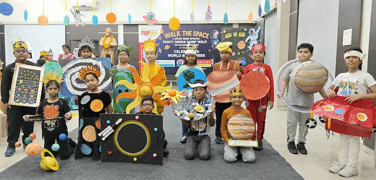 On 8th October 2025, Sriprakash Vidya Niketan, TPT Colony, celebrated World Space Week with a dazzling event titled “Walk the Space – A Fancy Dress Ramp Walk on Celestial Bodies.” The young learners stepped onto the stage dressed as planets, stars, astronauts, rockets, and satellites, showcasing their creativity and enthusiasm for space exploration. Each participant confidently shared interesting facts about their chosen celestial body, filling the atmosphere with excitement and curiosity. The event beautifully combined learning and fun, inspiring students to look beyond the skies and dream of discovering the mysteries of the universe.