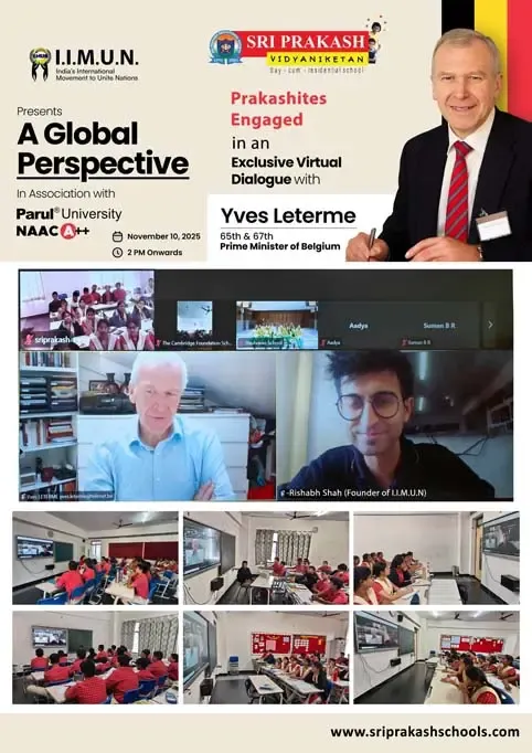 At Sri Prakash, recognized as the best boarding school in Vizag, learning extends far beyond classroom walls. As part of our commitment to providing holistic education in Vizag, students recently engaged in a remarkable virtual session titled “A Global Perspective”, featuring H.E. Yves Leterme, former Prime Minister of Belgium.