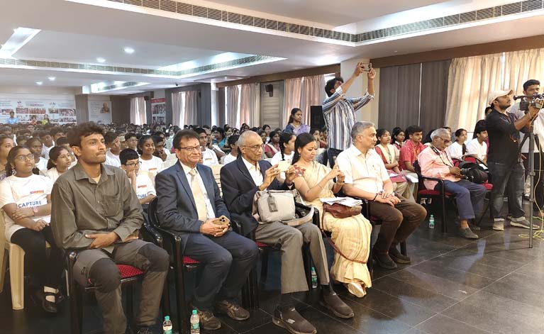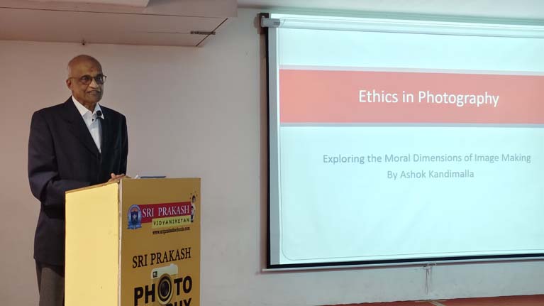 Mr. K R Deepak voiced that anticipating the next moment through the eyes of the camera and clicking at the right moment is extremely important to stand apart as a photographer. There are around 110 fields, wherein an exceptionally talented photographer creates a mark. Success for sure will be achieved if at the right young age the passion is channelised and get chiseled as a photographer, success for sure is achieved as said by Dr. B A N Nanda.  Dr. Umesh Mahantsetty was a moment advisor advising the students to stand apart as a well conducted human being for it is most important to inculcate necessary values to see a better world. He appreciated the participating students for their zeal to acquaint themselves with the techniques of photography. The eye of a photographer is very keen and sees things around, differently with aesthetic and artistic perception. Developing the skills of observation and imagination is very important to attain success in this field were the words from the Director of the School, Sri Chitturi Vasu Prakash.